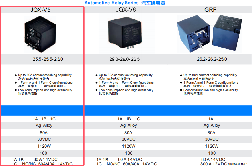 汽车继电器 JQX-V5
