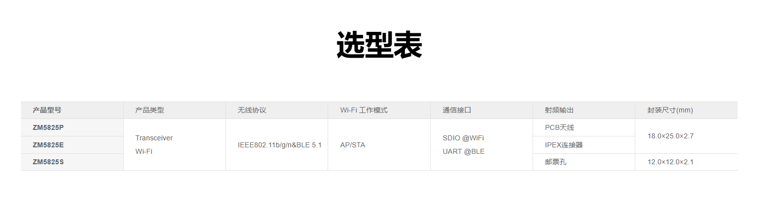 ZM5825系列Wi-Fi模组支持40MHz带宽的Wi-Fi 4 和BLE 5.1共存,无线功能强大。产品支持IEEE802.11 b/g/n三种 Wi-Fi通信协议,支持无线热点、无线客户端两种工作模式,采用20MHz/40MHz工作带宽,可以提供最大150Mbit/s物理层速率。